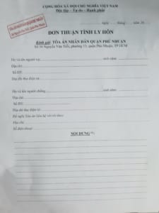 Hình ảnh về mẫu đơn thuận tình ly hôn tại TAND quận Phú Nhuận, thành phố Hồ Chí Minh:
