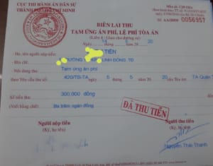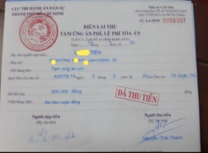Sau khi nhận Thông báo này, chị Tiên cùng Trợ lý Luật sư của công ty đã tới Chi cục Thi hành án dân sự quận Thủ Đức nộp tiền tạm ứng án phí (300.000 đ) và tiếp tục quay lại TAND quận Thủ Đức nộp (Liên 3) Biên lai thu tạm ứng án phí cho Tòa án, chị giữ lại Liên 4 Biên lai.