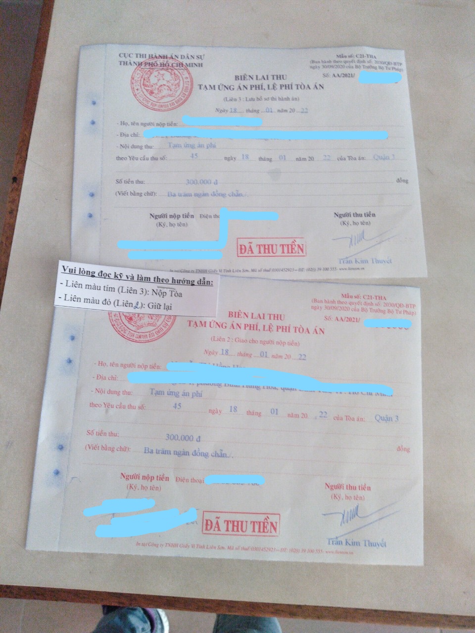 Ngày 18/01/2021, Luật sư công ty chúng tôi đã cùng anh Lâm lên TAND Quận 3 nhận kết quả xử lý đơn (khi đi mang theo Biên nhận đơn khởi kiện để nộp lại cho Tòa án) và nhận Thông báo nộp tiền lệ phí.