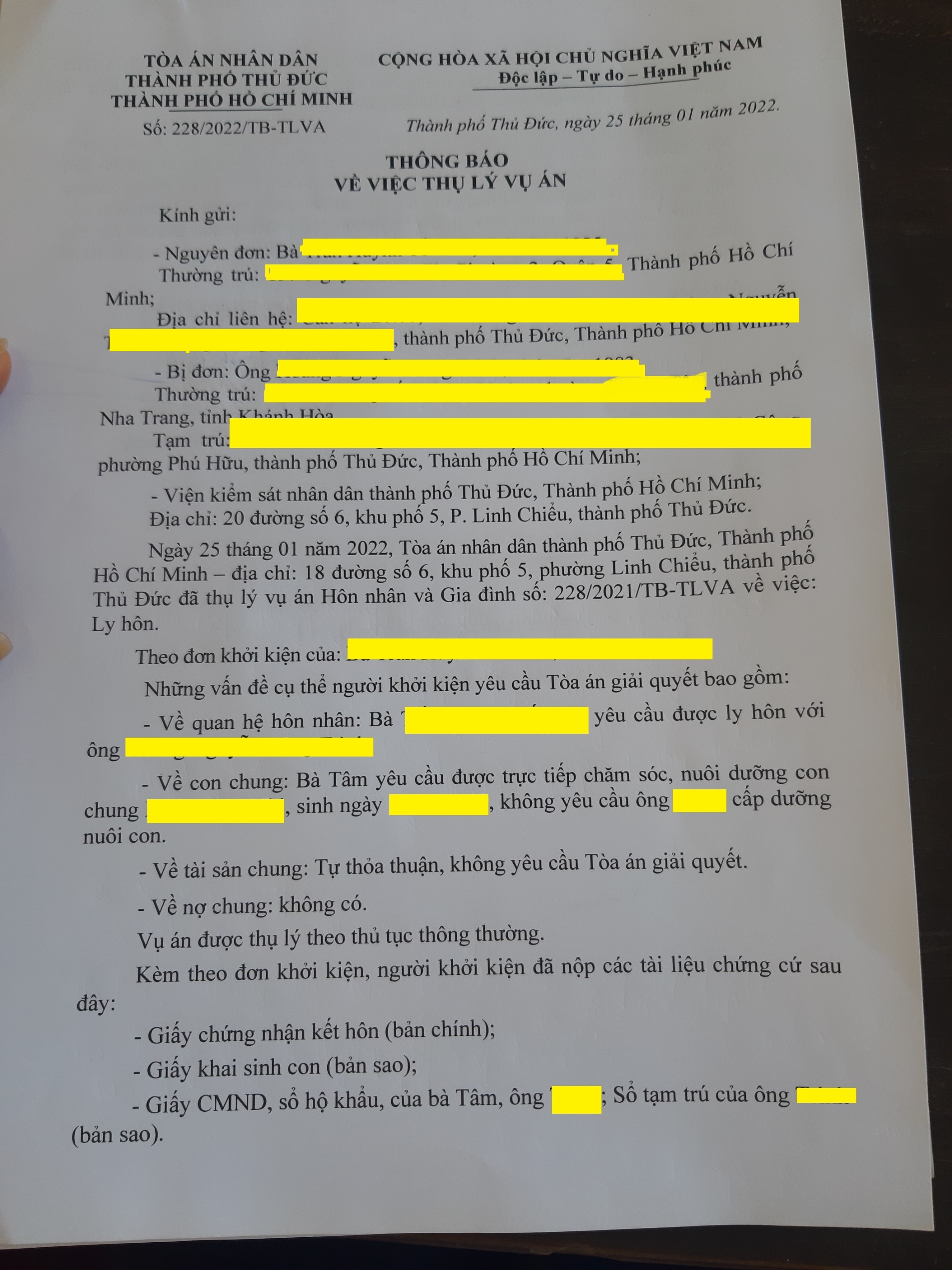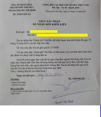 Ngày 23/12/2021, Luật sư công ty chúng tôi đã cùng chị Tâm lên TAND Thành phố Thủ Đức nộp đơn khởi kiện ly hôn